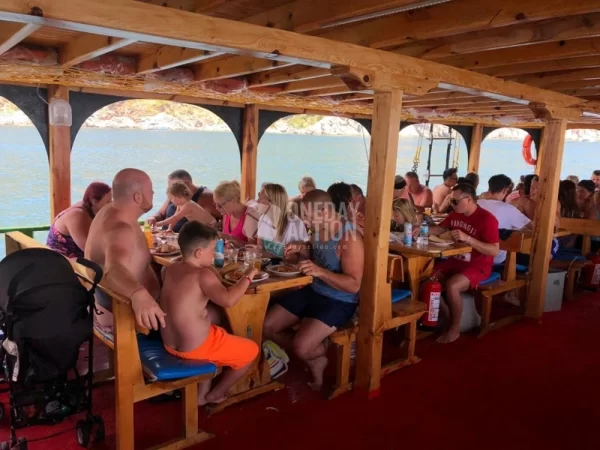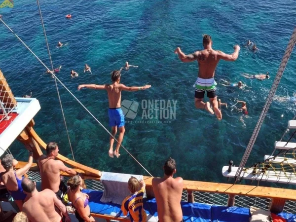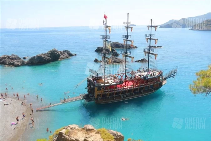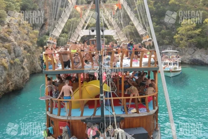 - Departure from Belcekiz Beach: Board the pirate-themed boat and set sail towards your first stop, the Blue Cave, where sunlight dances on the crystal-clear water. Take your first refreshing swim of the day.